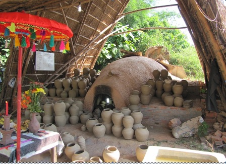 มาเยือนหมู่บ้านเฟือกติ๊ก ท่านจะได้ชมการสาธิตทำเครื่องเคลือบดินเผาจากช่างฝีมือเยี่ยม อาชีพการทำเครื่องเคลือบดินเผาที่เฟือกติ๊กได้รับการสืบทอดมาตั้งแต่บรรพบุรุษจนถึงปัจจุบัน ชาวบ้านที่นี่ยังเก็บรักษาร่องรอยของเตาเผาโบราณไว้เป็นอย่างดี พวกเขาจัดเนินแจ่งไว้เพื่อเป็นที่เก็บรักษาเศษเครื่องเคลือบดินเผาโบราณซึ่งถือเป็นพิพิธภัณฑ์ของหมู่บ้านก็ว่าได้ คุณป้าเลืองถิ่เล ช่างทำเครื่องเคลือบดินเผาอาวุโสของหมู่บ้านเล่าให้ฟังว่า “ เมื่อก่อนโน้นที่นี่ทำเครื่องเคลือบดินเผาหลากหลายประเภทเพราะขายดีได้ราคา ทำไม่ทันขาย ทุกบ้านมีชีวิตดีขึ้นและร่ำรวยขึ้น มีเงินสร้างบ้านและส่งเสียให้ลูกไปเรียน หมู่บ้านเฟือกติ๊กประกอบอาชีพการทำเครื่องเคลือบดินเผามาตั้งแต่ปลายปีค.ศ.๑๙๔๐ ซึ่งขณะนั้นดิฉันยังเป็นเด็ก ดิฉันทำอาชีพนี้ตั้งแต่ปีค.ศ.๑๙๗๕ พอมีเงินชาวบ้านจึงปลูกบ้านเหรื่องซึ่งเป็นบ้านแบบโบราณ เครื่องเคลือบดินเผาของเราขายดีแบะมี ราคาแพง ”