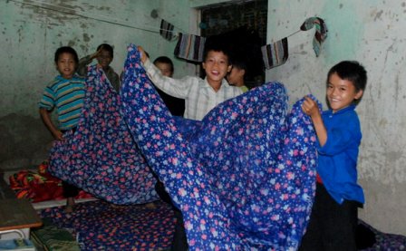 | เด็กๆในเขตเขามีความสุขที่ได้รับผ้าห่มใหม่(internet) |
