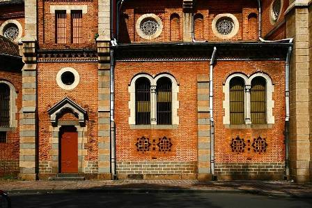 โบสถ์ถูกก่อสร้างด้วยอิฐสีแดง