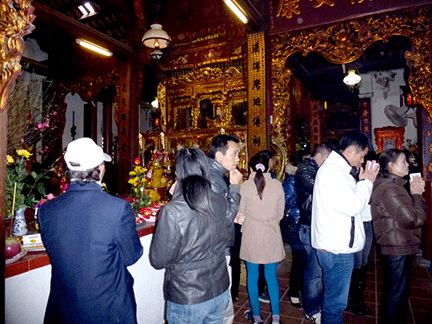 ปัจจุบันวัดGhềnh มีความศักดิ์สิทธิ์สำหรับชาวฮานอย บ่ายวันที่๖เดือนอ้าย มีพระภิกษุสามเณรจำนวนมากมาทำพิธีเซ่นไหว้วันต้นปีใหม่เพื่อขอให้สิ่งศักดิ์สิทธิ์ดลบันดาลให้ผู้แสวงบุญประสบโชคดีและคลาดแคล้วจากสิ่งที่ไม่ดีในปีใหม่ ชาวฮานอยจำนวนมากมาที่นี่เพื่อขอพรให้ทุกคนในครอบครัวมีสุขภาพพลานามัยที่สมบูรณ์ ประสบแต่ความสุขพร้อมทั้งชมทิวทัศน์ที่สวยงามช่วยให้จิตใจสะอาดผ่องแผ้ว นางNguyễn Thị Hồng อยู่ที่ถนนKhâm Thiênกรุงฮานอย มาทำบุญทุกปีกล่าวว่า“ประเพณีอันดีงามของชาติคือต้นปีไปทำบุญที่วัด ดิฉันมาที่นี่เพื่อแสวงหาความสงบให้แก่จิตใจและขอให้ทำมาค้าขึ้นในปี๒๐๑๓” นอกจากผู้สูงอายุแล้วก็ยังมีชายหญิงวัยทำงานจำนวนมากมาทำบุญที่นี่โดยนอกจากขอให้มีสุขภาพพลานามัยสมบูรณ์ สมาชิกในครอบครัวประสบแต่โชคดีแล้ว คู่ชายหญิงยังขอให้ความรักของตนผลิดอกออกผล คุณDiễm Hằng อยู่ที่เขตĐống Đaกล่าวว่า“ดิฉันเห็นว่า การไปทำบุญที่วัดในต้นปีใหม่เป็นประเพณีที่ดีงาม เพราะเมื่อมาขอพรที่นี่ทุกครั้ง ดิฉันก็ต้องปรับตัวเพื่อให้มีวิถีชีวิตที่ดี ทุกคนต่างมีความปรารถนาที่แตกต่างกัน แต่ขอพรด้วยใจจริง” นายVũ Anh Quân เจ้าของสถานประกอบการเครื่องประดับอัญมณีที่มาร่วมพิธีขอให้ประสบโชคดี คลาดแคล้วจากสิ่งไม่ดีในปีใหม่เผยว่า นี่เป็นปีที่๓ที่เขามาร่วมพิธี สำหรับเขา การไปแสวงบุญในต้นปีใหม่เป็นประเพณีที่ดีงาม ขอให้สถานประกอบการ ครอบครัว และญาติมิตรประสบโชคดีในต้นวสันตฤดู“ชาวเวียดนามมีวิถีชีวิตที่ดี ทุกครอบครัวไปทำบุญที่วัดในช่วงปลายและต้นปี เพื่อขอให้ประสบโชคลาภ มีความสุขความเจริญ มีสุขภาพพลานามัยที่สมบูรณ์ ผมมาที่นี่ขอให้สิ่งศักดิ์สิทธิ์ดลบันดาลให้สมหวังดั่งใจนึก”