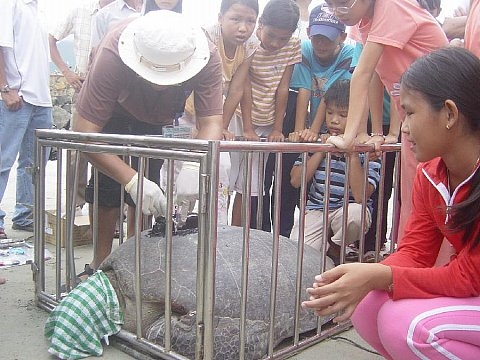 | เต่าทะเลถูกติดเครื่องติดตามเส้นทางเดิน ( VietNam Dat Nuoc Con nguoi ) |
