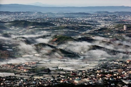 เมืองดาลัตในหมอกมองจากยอดเขาสูง ๑,๙๕๐ เมตร