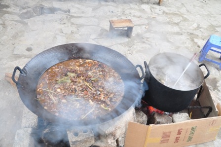 ตลาดนัดบั๊กห่ามีโซนขายของต่างๆเช่น โซนขายปศุสัตว์และสัตว์ปีก และโซนขายอาหาร ซึ่งโซนอาหารการกินนั้นมีคนพลุกพล่านที่สุด และอาหารที่ถือว่าเป็นอาหารพิเศษของที่นี่คือ ทั้งโก๊ ซึ่งเป็นอาหารพื้นเมืองของชนเผ่าม้งที่มีมากว่าพันปี ทั้งโก๊ทำจากเครื่องในของม้ากับเครื่องปรุงที่เป็นพวกผักแนมชนิดต่างๆของเขตเขาเช่น อบเชย ใบตะไคร้ . . . และปัจจุบันได้มีการปรับปรุงอาหารทั้งโก๊นี้ โดยปรุงด้วยเครื่องในของแพะ วัวและควายด้วย ท่ามกลางอากาศหนาวเหน็บยามเช้า ได้รับประทานทั้งโก๊และดื่มเหล้าข้าวโพด เราจะรู้สึกถึงความเผ็ดร้อน ทั้งนี้เป็นการหน่วงเหนี่ยวใจเราให้อยู่ที่นี่ต่อไป ที่ตลาดนัดบั๊กห่ายังมีอาหารพื้นเมืองเขตเขาที่อร่อยไม่แพ้ทั้งโก๊คือ ขนมข้าวโพดนึ่ง เนื้อสุกรดำ ก๋วยเตี๋ยวเปรี้ยวและเนื้อไก่ดำ นายหลู่ วัน ติ๋ง เจ้าของร้านทั้งโก๊ เปิดเผยว่า เขาสามารถขายทั้งโก๊ได้สองกระทะใหญ่ในตลาดแต่ละนัด “ อาหารทั้งโก๊นี้ผมปรุงจากเครื่องในม้าได้แก่ ใส้ กระเพาะและหัวใจ และล้างให้สะอาด อาหารทั้งโก๊นี้ปรุงให้ดีๆก็จะอร่อยมาก ขายชามละตั้งแต่ ๔หมื่นถึง๕หมื่นด่อง ”