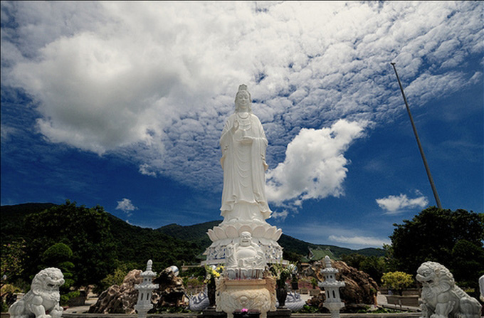 เมื่อพูดถึงวัดลิงอื๊งทุกคนจะนึกถึงองค์เจ้าแม่กวนอิมที่ประดิษฐานด้านหน้าวัด มีความสูง67เมตรหรือเท่าอาคาร30ชั้น ประทับบนฐานบัวที่มีเส้นผ่าศูนย์กลาง35เมตร ซึ่งถือได้ว่าเป็นองค์เจ้าแม่กวนอิมที่ใหญ่ที่สุดของอาเซียนก็ว่าได้ โดยเป็นรูปปั้นท่ายืนสูงถือแจกันโปรยน้ำทิพย์ประทานพรให้ชาวบ้านที่ออกจับปลาในทะเลมีความปลอดภัย ภายในรูปปั้นมี17ชั้น แต่ละชั้นก็มีพระพุทธรูป21องค์ โดยแต่ละปางจะมีพุทธกิริยาไม่ซ้ำกัน สำหรับชาวดานัง องค์เจ้าแม่กวนอิมที่สูงใหญ่บนยอดเขาที่สามารถมองเห็นแต่ไกลทั้งช่วงกลางวันและยามค่ำมืดอย่างชัดเจนก็เหมือนเป็นหอประภาคารที่นำทางเพื่อความปลอดภัยโดยเฉพาะช่วงที่เกิดพายุ นาย หวิ่งวันเตอ อาศัยในเขตเซินจ่า เผยว่า ในใจของผมเจ้าแม่กวนอิมเป็นเทพแห่งความศักดิ์สิทธิ์ เมื่อไปไหนมาไหนเราทุกคนต่างมุ่งใจอธิษฐานขอให้ทำมาค้าขึ้น ซึ่งเจ้าแม่กวนอิมเหมือนคอยให้การคุ้มครองชาวบ้านมาตลอด