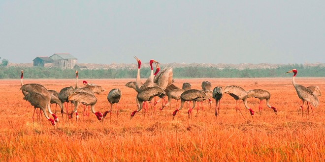 ในช่วงนี้ที่อุทยานจ่ามจิม หนึ่งในแหล่งท่องเที่ยวที่ขึ้นชื่อของด่งทาบเหมื่อยได้กลายเป็นแหล่งหากินของนกหลายชนิดโดยเฉพาะนกกระสา โดยภาพของฝูงนกที่บินเต็มท้องฟ้าเหนือทุ่งนาหรือเกาะเต็มกิ่งไม้เหมือนปุยเมฆขาวได้สร้างเป็นภาพที่สวยงามให้แก่จ่ามจิม แต่หลังจากที่น้ำเริ่มลดลง ที่จ่ามจิมจะเป็นแหล่งหนีหนาวของฝูงนกกระเรียนหัวแดงซึ่งเป็นนกที่หายากที่ถูกระบุในหนังสือปกแดงซึ่งก็เป็นจุดที่น่าสนใจสำหรับผู้ที่ชอบค้นคว้าธรรมชาติ สัมผัสกับชีวิตของนกป่า ซึ่งภาพของฝูงนกที่กางปีกโบยบินใต้แสงตะวันที่ลาลับขอบฟ้านั้นก็ได้สร้างอารมณ์ศิลป์ให้ช่างภาพเก็บเสี้ยวนาทีแห่งลีลาธรรมชาติอันน่าทึ่งนี้และก็มีผลงานหลายชิ้นที่สามารถคว้ารางวัลในการประกวดภาพถ่ายทั้งในและต่างประเทศ