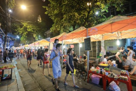 นักท่องเที่ยวต่างชาติเมื่อมาฮานอยมักจะพักในโรงแรมเล็กๆในย่านเก่าแก่เช่น ถนนดิงเหลียต ห่างบาก มะเมยและห่างโจ๊งเพื่อสะดวกแก่การสัมผัสกับวิถีชีวิตของคนที่นี่ การศึกษาค้นคว้าความเป็นมาและวัฒนธรรม และมีอาหารหลายอย่างไว้บริการนักท่องเที่ยวทั้งอาหารยูโรป เอชียและอาหารเวียดนามพร้อมเครื่องดื่มต่างๆ โดยในตอนเช้า นักท่องเที่ยวอาจนั่งดื่มกาแฟข้างทาง เสร็จแล้วเดินเลาะเลียบตามถนนสายต่างๆเพื่อเก็บภาพที่ตนชื่นชอบ พอหิวก็แวะเข้าร้านอาหารหรือหาของกินริมทาง ซึ่งอาหารเวียดนามที่นักท่องเที่ยวต่างชาติชอบเป็นอันดับหนึ่งคือ เฝอหรือก๋วยเตี๋ยวที่มีทั้งเฝอเนื้อและเฝอไก่ นอกจากนี้ยังมีขนมจีนหมูย่าง ขนมจีนปลาไหล ขนมจีนหอยโข่งที่อร่อยๆ สำหรับนักท่องเที่ยวที่เป็นคอเบียร์ก็สามารถหาดื่มเบียร์สดริมทางพร้อมชมชีวิตบนถนน