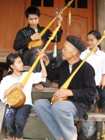 ศิลปินอาวุโสมา วัน หวิ่งสอนเด็กเล่นพิณซิึง