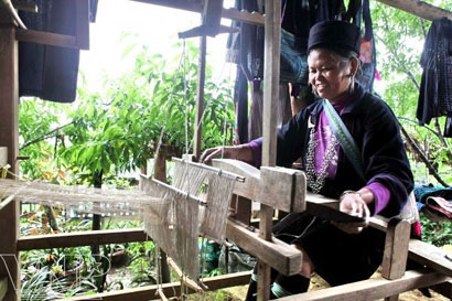 ส่วนคุณหว่างถิ่ตุ่ง ที่กำลังทอผ้าลวดลายต่างๆด้วยกี่ทอเล็กๆและเก่าแก่ที่สามีเธอเป็นคนทำขึ้น คุณตุ่งทำอาชีพทอผ้ามากว่า ๓๐ ปีเล่าว่า “ ดิฉันทอผ้าเพื่อเย็บเสื้อให้ลูก เสื้อทำงานและเอาไว้ใส่ไปเที่ยว การทอผ้ายากมาก ต้องเรียนรู้และมีประสบการณ์ ดิฉันเรียนจากคุณพ่อและคุณแม่ประมาณ ๑ สัปดาห์ก็ทำได้ ผ้าที่เราทอเองทั้งหมดเพื่อใช้ในครอบครัวไม่ได้ทอไว้ขาย ”