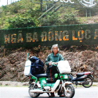 | จิตรกรดั่งอ๋ายเหวียดกับรถจักรยานยนต์ Chaly เพือนร่วมเดินทาง ( สำนักข่าวเวียดนาม) |