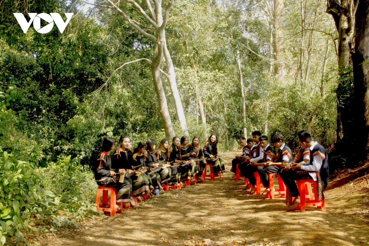 กิจกรรมนี้เริ่มต้นด้วยการบรรเลงเพลง Đón khách หรือ แปลว่า “ต้อนรับแขก”ของทีมฆ้องไผ่ชายจากหมู่บ้าน Kmrơng Prong A โดยจังหวะที่สนุกคึกครื้นของเพลงเปรียบเสมือนการเชิญชวนให้ทีมฆ้องหญิงจากหมู่บ้าน Kbu มาเข้าร่วมการแสดง นาย Y Bây Kbuôr หัวหน้าหมู่บ้านและรองเลขาธิการพรรคสาขาหมู่บ้าน Kmrơng Prong A ได้เผยว่า ทีมฆ้องชายชุดนี้เป็นหนึ่งใน 3 ทีมฆ้องของหมู่บ้าน Kmrơng Prong A ในปัจจุบัน“นี่คือทีมฆ้องไผ่ที่สมาชิกมีอายุน้อยที่สุด โดยได้รับการจัดตั้งเมื่อปีที่แล้วในกรอบโครงการอบรมและสอนการตีฆ้องของศูนย์วัฒนธรรมเมืองบวนมาถวด นี่เป็นครั้งแรกที่ทีมฆ้องเด็กผู้ชายได้พบปะสังสรรค์กับทีมฆ้องหญิงจากหมู่บ้าน Kbu สิ่งที่น่ายินดีคือสมาชิกในทีมรู้สึกภาคภูมิใจที่ได้บรรเลงเพลงต่างๆ หวังว่า ทีมฆ้องเด็กผู้ชายจะมีโอกาสเข้าร่วมการแสดงและงานมหกรรมที่มีขนาดใหญ่ขึ้นเพื่อพบปะสังสรรค์และเรียนรู้สิ่งใหม่ๆจากทีมฆ้องอื่นๆ”