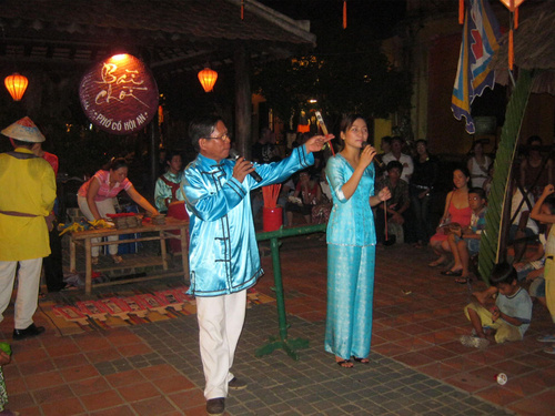 การแสดงรายการร้องเพลงพื้นบ้าน โดยเฉพาะการร้องเพลง Choi จะมีขึ้นเป็นประจำทุกเดือนในวันที่ 14 จันทรคติ ซึ่งเป็นคืนจันทร์เพ็ญที่สวยงามในเมืองเก่า Hoi An อันสะท้อนให้เห็นบรรยากาศของเมืองเก่าในต้นศตวรรษ การแสดงร้องเพลงพื้นเมืองประกอบการละเล่นพื้นเมือง ทำให้ผู้เข้าชมและนักท่องเที่ยวต่างชาติชอบใจและเข้าร่วมอย่างสนุกสนานนั้น เป็นผลิตภัณฑ์ท่องเที่ยวอีกอย่างหนึ่งของเมืองเก่า Hoi An ที่ทำให้นักท่องเที่ยวทั้งในและต่างประเทศปรารถนาได้มาเยือนสักครั้ง./.