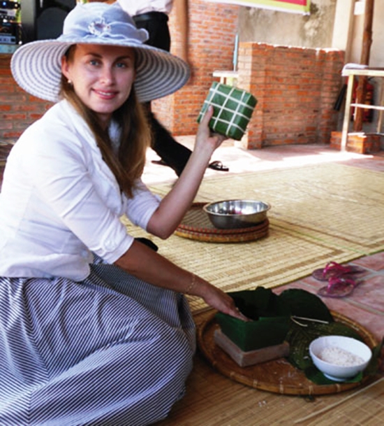 | นักเขียนดาเรีย มิชูโกวา ลองห่อ Banh Trung หรือขนมข้ามต้มมัดญวณ ( นสพ.Phap luat ) |