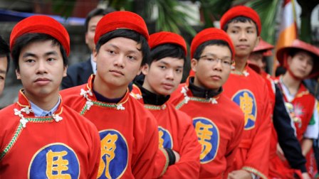 ( VOVworld )-ในแวดวงนักเล่นหมากรุกจีนที่มีชื่อเสียงของฮานอยมักจะมีคำพูดประโยคหนึ่งที่พูดจนติดปากว่า “ ถ้าไม่มาเล่นหมากรุกจีนที่วัดวัวก็จะไม่ได้เป็นนักหมากรุกมือหนึ่ง ” นักเล่นหมากรุกที่มาร่วมการแข่งขันที่วัดวัวหากสามารถคว้าแชมป์ได้สามครั้งติดต่อกันก็จะได้จารึกชื่อบนแผ่นศิลาในบริเวณวัด ด้วยเหตุนี้ เมื่อวสันตฤดูเวียนมาทุกครั้ง นักหมากรุกจีนมือหนึ่งทุกคนจะลงทะเบียนเข้าร่วมการแข่งขัน