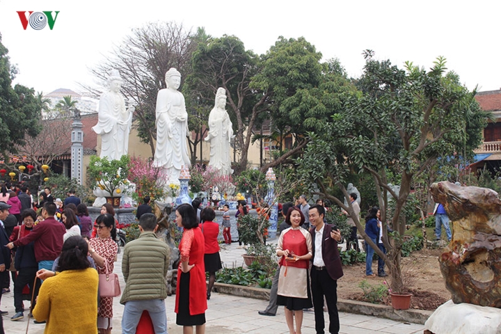 ท่ามกลางบรรยากาศแห่งความชื่นมื่นของเทศกาลตรุษเต๊ตตามประเพณี ประชาชนเวียดนามยังคงไปทำบุญที่วัดเพื่อขอพรให้สมาชิกในครอบครัวมีสุขภาพแข็งแรง มีความสุข และประสบโชคลาภ เพราะฉะนั้น ประเพณีไปทำบุญที่วัดในช่วงต้นปีใหม่จึงกลายเป็นเอกลักษณ์วัฒนธรรมของประชาชาติเวียดนามมาจนถึงทุกวันนี้.