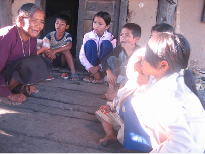 | ร้องบทกวีมหากาพย์ดัมยวงให้เด็กในหมู่บ้าน ( เวินแอง ) |