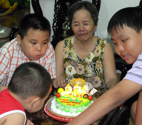 | คุณยายกับหลานในโอกาสฉลองวันคล้ายวันเกิด |