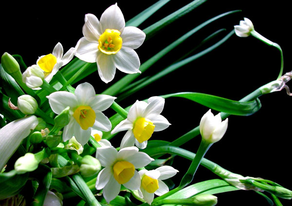 ทุกปีเมื่อไออุ่นจากวสันต์เวียนมาแทนความหนาวเหน็บของเหมันต์ ชาวฮานอยที่รักดอกจุ้ยเซียนก็จะเริ่มปลูกดอกไม้ที่ชนิดนี้ โดยนำหัวจุ้ยเซียนแห้งมาแช่น้ำให้มีความสดและฟูเต็มที่ จากนั้นจะเป็นขั้นตอนการตัดแต่งให้เป็นรูปทรงต่างๆ ซึ่งเป็นขั้นตอนที่ต้องการความละเอียดและประณีตและกว่าจะได้ช่อจุ้ยเซียนที่สวยเพื่ออวดโชว์แขกที่มาเยี่ยมในช่วงตรุษเต็ตก็ต้องผ่านขั้นตอนอย่างน้อย ๓ ขั้นตอน ซึ่งก่อนอื่นคือตัดแต่งหัวจุ้ยเซียน เช็ดด้วยน้ำสะอาดแล้วเช็ดน้ำยางออกด้วยไม้กวาดขนไก่เล็กๆ จุ้ยเซียนเป็นดอกไม้ที่ถือว่าบริสุทธิ์และต้องการความสะอาด ดังนั้นต้องจัดวางในที่โล่ง เปลี่ยนน้ำและล้างรากทุกวันเพื่อป้องกันไม่ให้รากเน่าตลอดจนต้องการการดูแลเป็นอย่างดี โดยเฉพาะช่วงที่ออกดอก หากหัวออกรากยากก็ต้องเอาไปฝังในทรายชื้น โดยทรายนั้นต้องล้างสะอาด และก่อนที่จะฝังในทรายต้องห่อหัวจุ้ยเซียด้วยผ้าฝ้ายใหม่ที่สะอาดเพื่อป้องกันรากเน่า นายเหงวียนเหวียดหยุง ที่มีประสบการณ์ในการตัดแต่งและปลูกจุ้ยเซียน ของหมู่บ้านงีต่าม กรุงฮานอยเผยว่า “ การตัดแต่งหัวจุ้ยเซียนนั้นต้องมีความละเอียดและเคล็ดลับตามแบบของคนฮานอยโบราณที่ให้ดอกสูงกว่าใบจึงจะได้ดอกจุ้ยเซียนที่สวยน่าชม การตัดแต่งหัวจุ้ยเซียนต้องไม่แตะใบและดอก อีกทั้งไม่ปล่อยให้โดนน้ำสกปรก และต้องตัดแต่งวันละนิดตามการเติบโตของหัวจุ้ยเซียน ”