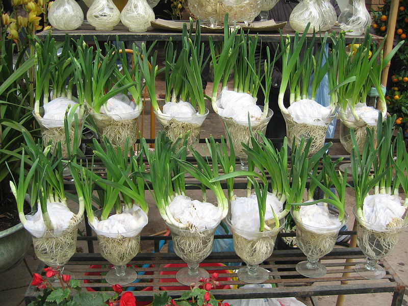 เมื่อวสันต์เวียนมา ดอกจุ้ยเซียนจะบานก่อนดอกไม้พันธุ์อื่นๆ และสื่อถึงความหมายมงคลหมายคือความเป็นนิรันดร์ โชคลาภ และความเจริญรุ่งเรือง ดังนั้น คนเล่นจุ้ยเซียนต้องดูแลให้มันบานตรงกับนาทีส่งท้ายปีเก่าต้อนรับปีใหม่เพื่อประสบแต่ความดีงามและสมหวังในปีใหม่ หากอากาศหนาวจัด จุ้ยเซียนจะออกดอกยาก ต้องแช่จุ้ยเซียในน้ำอุ่นหรือวางในห้องปิดสนิทเพื่อให้บานเร็วขึ้น ส่วนอากาศร้อนและชื่นจะใช้ยางมะละกอหรือไข่ขาวทาเพื่อไม่ให้ดอกบานก่อนกำหนด ช่อจุ้ยเซียสวยต้องมีใบสีเขียวสด รากสีขาวและยาว ดอกสูงกว่าใบและมักจะถูกทำเป็นรูปทรงต่างๆไม่ว่าจะเป็นรูปหงษ์ มังกรร่อนลง นางฟ้าร่อนลงหรือรูปนกหาก ซึ่งช่อจุ้ยเซียแต่ละช่อเป็นผลงานศิลปะจากฝีมือของผู้ที่รักดอกไม้และเคล็ดลับการดูแลหัวจุ้ยเซียน ดังนั้นการเล่นจุ้ยเซียนต้องมีความคิดสร้างสรรค์ ใช้เวลา และใช้ความอดทน ดอกจุ้ยเซียมีกลิ่นหอมสดชื่นพิเศษที่ไม่มีดอกอื่นเหมือน หากมันบานตรงกับช่วงตรุษเต็ตหรือวันเริ่มต้นปีใหม่ก็จะถือว่าโชคดีมากๆ ทั้งนี้คือเหตุผลที่ทำให้คนฮานอยชื่นชอบจุ้ยเซียและมักจะหาซื้อมาประดับบ้านในช่วงเทศกาลตรุษเต็ตตามประเพณีของชาติ