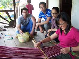 นักท่องเที่ยวลองทอผ้าลวดลายต่างๆของชนเผ่า บานา