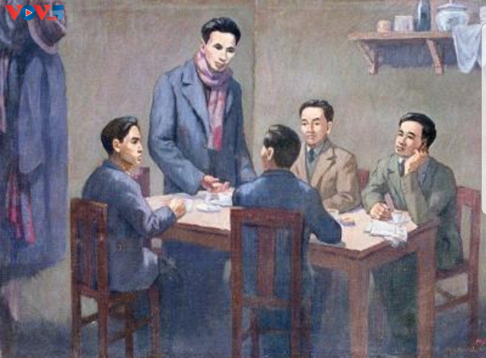 ภาพวาดการประชุมเกี่ยวกับการก่อตั้งพรรคคอมมิวนิสต์เวียดนามเมื่อวันที่ 3 กุมพาภันธ์ปี 1930 |