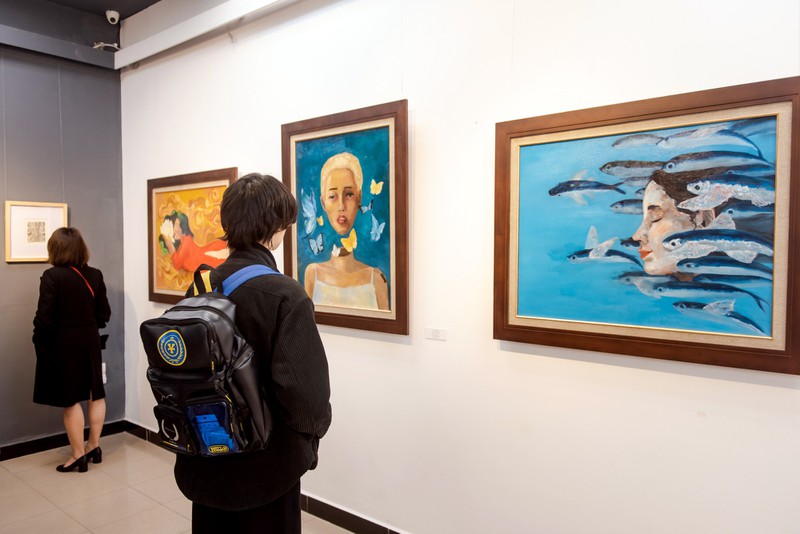 จิตรกรรุ่นใหม่ที่เข้าร่วมนิทรรศการภาพวาด “โห่ยหายหมา” (baovanhoa.vn) |