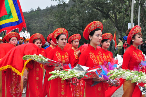 | ขบวนสาวถวายดอกไม้และของสังเวยแด่บรรพกษัตริย์หุ่ง ( Phu Tho online ) |