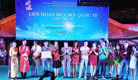 ( VOVworld )-รายการแสดงหุ่นชักสายเชิด “ การระบำของดอกกวิ่ง” ของโรงละครหุ่นกระบอกเวียดนามได้รับรางวัลเหรียญทองในงานมหกรรมแสดงหุ่นกระบอกนานาชาติครั้งที่ ๔ ณ กรุงฮานอยเมื่อเร็วๆนี้ ซึ่งเป็นรางวัลเหรียญทองรางวัลเดียวจาก ๑๘รายการแสดงของคณะหุ่นกระบอกจาก ๑๐ ประเทศที่เข้าร่วม คณะหุ่นกระบอกเวียดนามยังแสดงรายการหุ่นกระบอก หุ่นชักสายเชิดและหุ่นกระบอกน้ำที่ได้ประดิษฐ์สร้างขึ้นมาและได้รับความชื่นชมจากคณะผู้ตัดสิน ทั้งนี้เป็นการยืนยันถึงภูมิปัญญาด้านศิลปะและวัฒนธรรมการแสดงหุ่นกระบอกเวียดนามให้เป็นที่รู้จักแพร่หลายในโลก