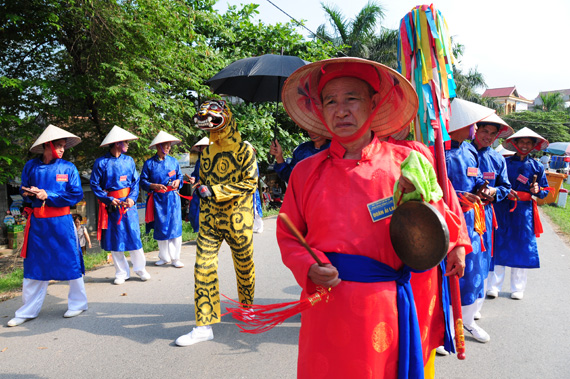 (VOVworld)-การร้องและรำอ๋ายลาวเป็นพิธีกรรมด้านความเลื่อมไสที่มีขึ้นในเทศกาลเทพย้องของหมู่บ้านฝู่ด๋ง อ.ยาเลิม กรุงฮานอย โดยคณะศิลปะอ๋ายลาวจากหมู่บ้านโหยซ้าเขตลองเบียนเป็นผู้แสดง ซึ่งนับเป็นการร้องรำแบบโบราณที่ยังคงได้รับการสืบสานและอนุรักษ์อย่างสมบูรณ์จนถึงทุกวันนี้ เพราะศิลปะการร้องรำอ๋ายลาวนี้ไม่เพียงแต่มีลีลาคำร้องและท่ารำที่เป็นเอกลักษณ์เฉพาะเท่านั้นหากยังมีความหมายด้านความเลื่อมไส มีคุณค่าด้านวัฒนธรรมและประวัติศาสตร์ที่ควรได้รับการอนุรักษ์และพัฒนาต่อไป