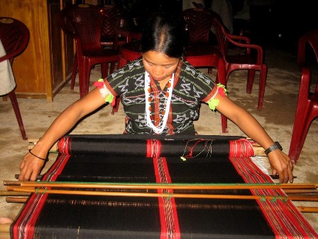 สตรีชนเผ่าเกอตูทอผ้าลวดลายพื้นเมือง