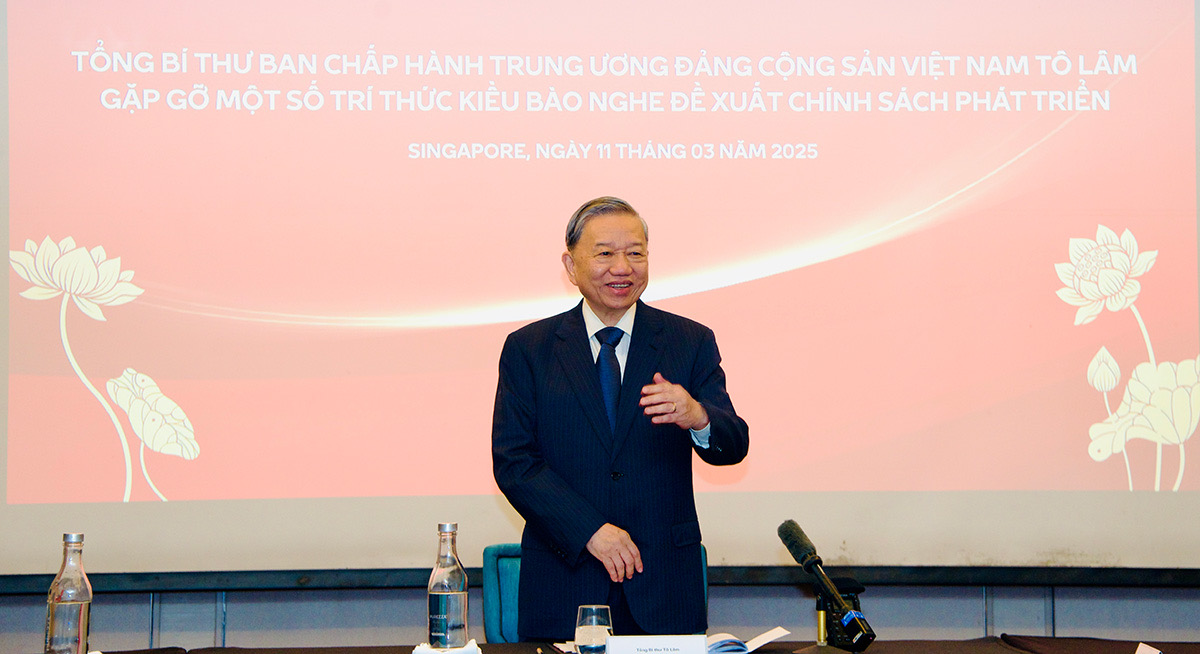 เลขาธิการใหญ่พรรค โตเลิม ในการพบปะกับปัญาชนชาวเวียดนามที่อาศัยในต่างประเทศในกรอบการเยือนประเทศสิงคโปร์เมื่อเดือนมีนาคมที่ผ่านมา |