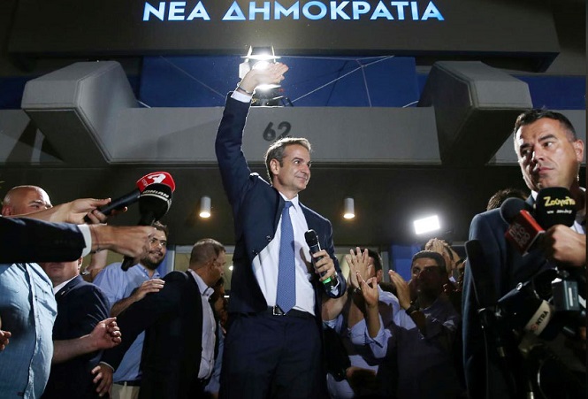หัวหน้าพรรคประชาธิปไตยใหม่ Kyriakos Mitsotakis กับผู้สนับสนุน (Reuters) |