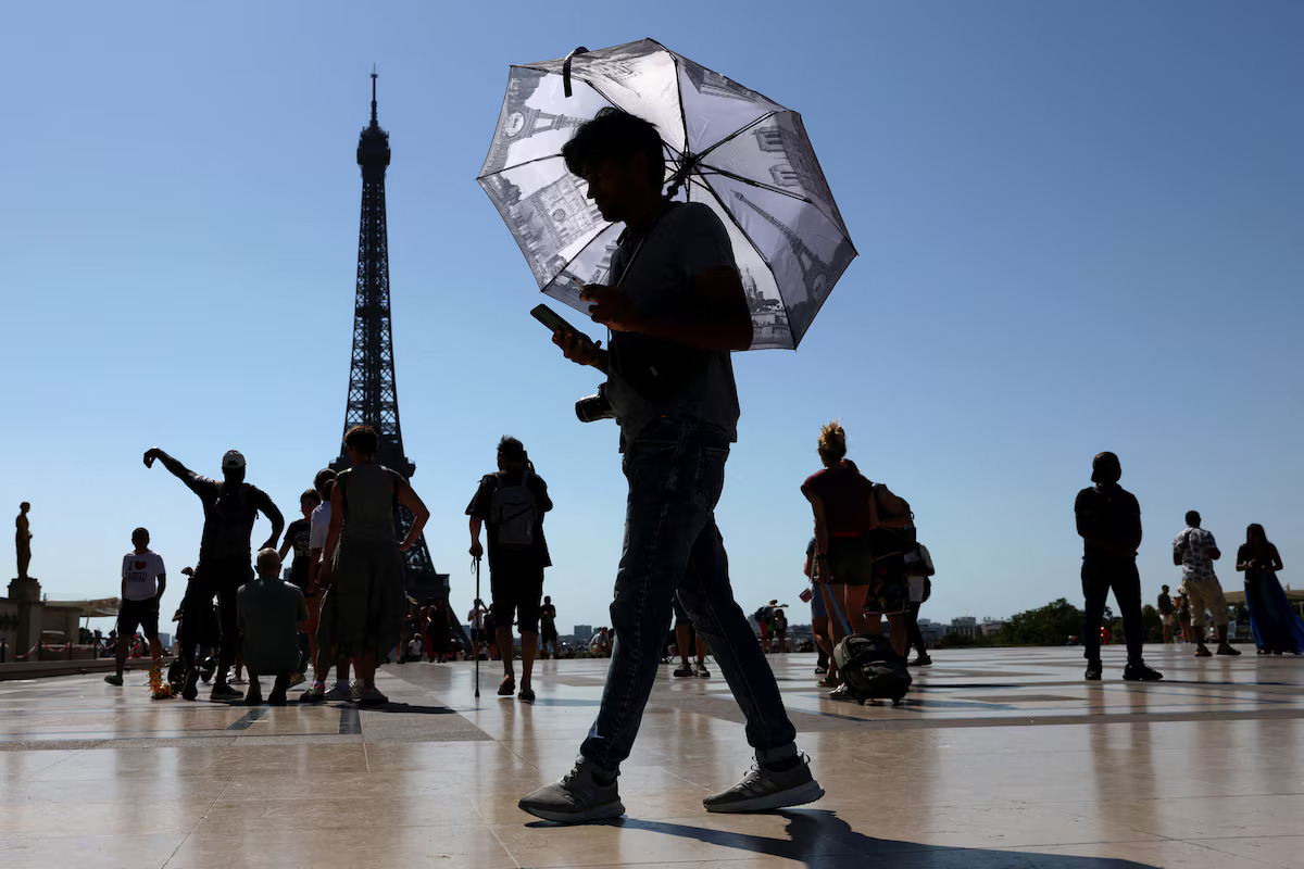 อากาศร้อนจัดบริเวณจัตุรัสทรอกาเดโร ติดกับหอไอเฟล ในช่วงคลื่นความร้อนแรกของฤดูร้อนในกรุงปารีส ประเทศฝรั่งเศส เมื่อวันที่ 1 กรกฎาคม 2026 (REUTERS/Tom Nicholson) |