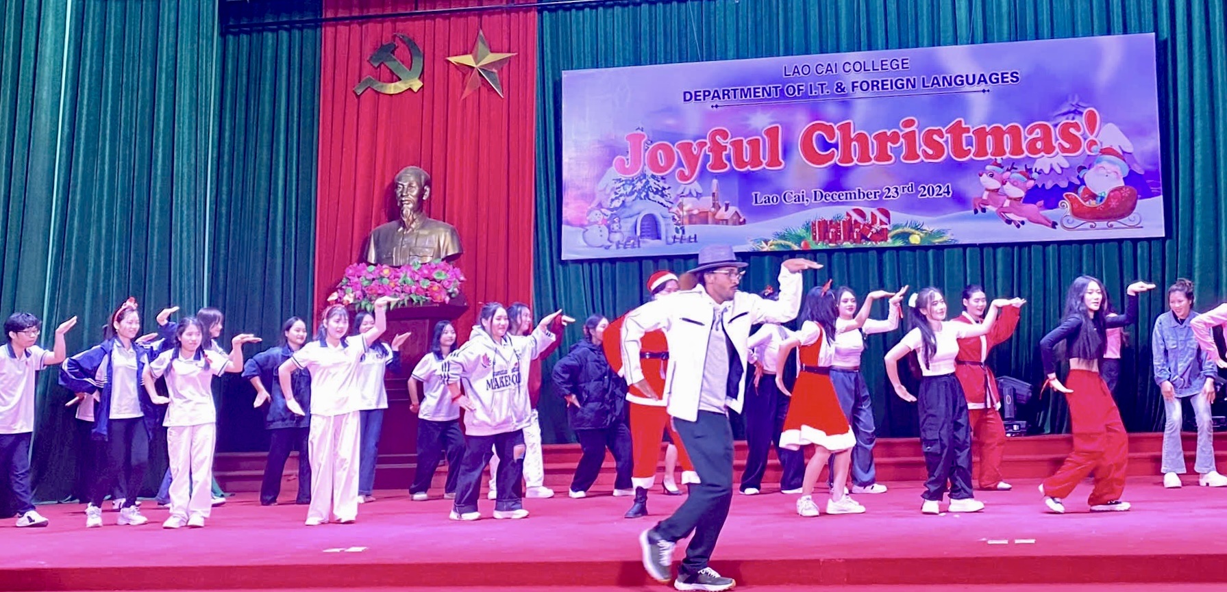 Shidaun Campbell performs with his students in 2024 for Lao Cai College’s Christmas event (Photo credit: Shidaun Campbell) |