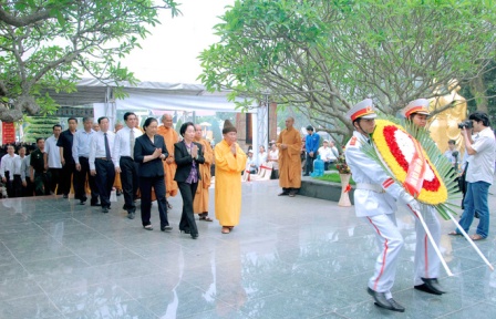 Phó Chủ tịch nước Nguyễn Thị Doan, đại diện lãnh đạo Bộ Nội vụ, Bộ Lao động Thương binh và Xã hội, các ban, ngành Trung ương, Trung ương Giáo hội Phật giáo Việt Nam, tỉnh Điện Biên, tỉnh Thừa Thiên Huế cùng đông đảo phật tử, nhân dân trong và ngoài tỉnh Điện Biên dự lễ. Đây là hoạt động thiết thực nhân kỷ niệm 60 năm Chiến thắng Điện Biên Phủ (7/5/1954 – 7/5/2014), thể hiện đạo lý “Uống nước nhớ nguồn”, “Đền ơn đáp nghĩa” của nhân dân Việt Nam, biết ơn các anh hùng, liệt sỹ đã anh dũng hy sinh trong Chiến dịch Điện Biên Phủ 1954 nói riêng và trong sự nghiệp giải phóng dân tộc, bảo vệ đất nước nói chung.