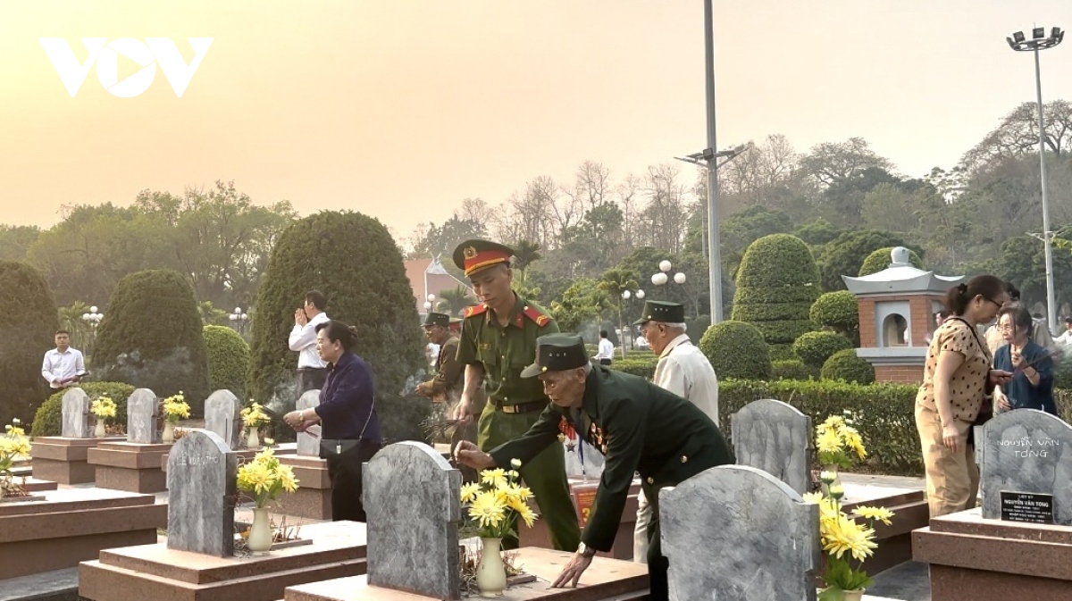 Giữa niềm vui mừng, phấn khởi được gặp lại đồng chí, đồng đội, là sự xúc động, nghẹn ngào khi đứng trước bia mộ các anh hùng, liệt sĩ. Ông Vũ Văn Tri, đến từ tỉnh Lai Châu, chiến sĩ Điện Biên trung đoàn 675, Đại đoàn Công pháo 351, bày tỏ: "Tôi năm nay tuổi đời 98 rồi, cố gắng lên lần này thắp hương cho đồng đội đã hi sinh vì tổ quốc. Thế là toại nguyện cuộc đời của tôi".