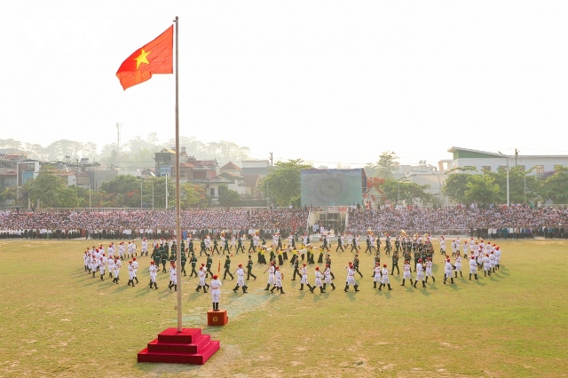 Mở đầu buổi hợp luyện là các nghi thức chào cờ, biểu diễn quân nhạc. Ảnh: VOV |