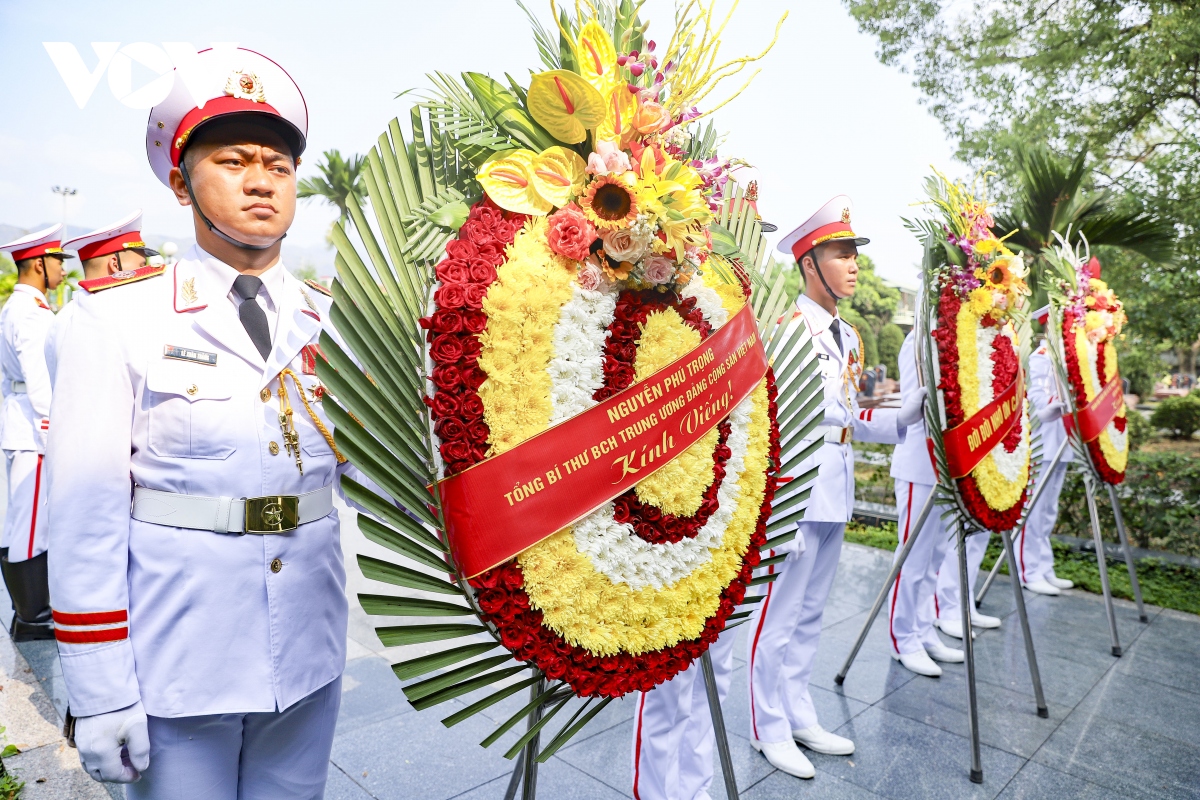 Tổng Bí thư Nguyễn Phú Trọng gửi vòng hoa tưởng niệm các anh hùng liệt sĩ - Ảnh: Vũ Lợi/VOV |