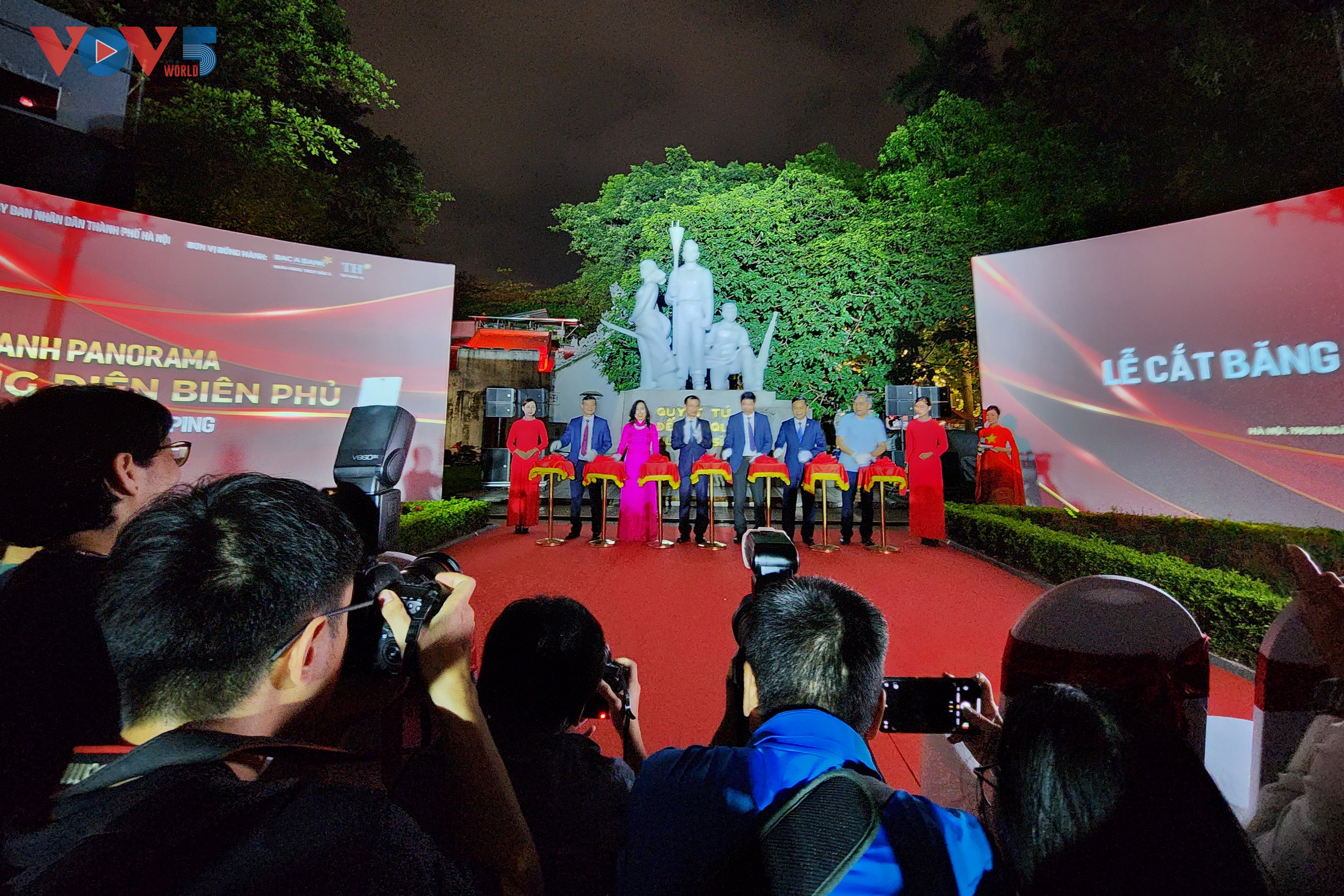 Các đại biểu cắt băng khai trương chương trình trình chiếu tranh panorama "Chiến thăng Điện Biên Phủ". |