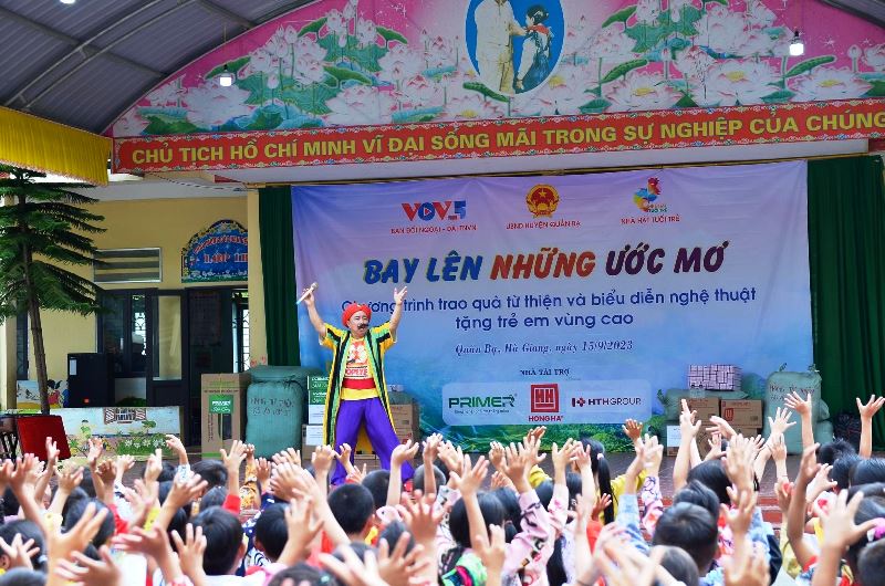 “Bay lên những ước mơ” là chương trình từ thiện do Ban đối ngoại VOV5 phối hợp cùng Nhà hát Tuổi trẻ tổ chức, với mong muốn sẻ chia khó khăn với những em nhỏ tại những điểm trường xa xôi của đất nước. Với sự chung tay của các mạnh thường quân, những người quan tâm đến sự nghiệp giáo dục miền núi, đoàn công tác đã đến với một số trường mầm non và tiểu học của huyện Quản Bạ, tỉnh Lào Cai, mang đến cho các em những chương trình văn nghệ và những món quà nhỏ, ý nghĩa.
