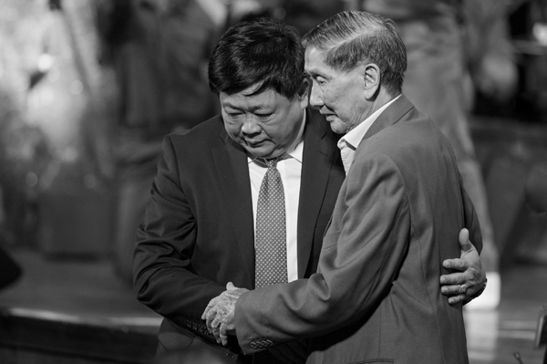 Tổng giám đốc Đài TNVN Nguyễn Thế Kỷ và nhạc sĩ Phạm Tuyên, tác giả của ca khúc "Chiến đấu vì độc lập tự do".