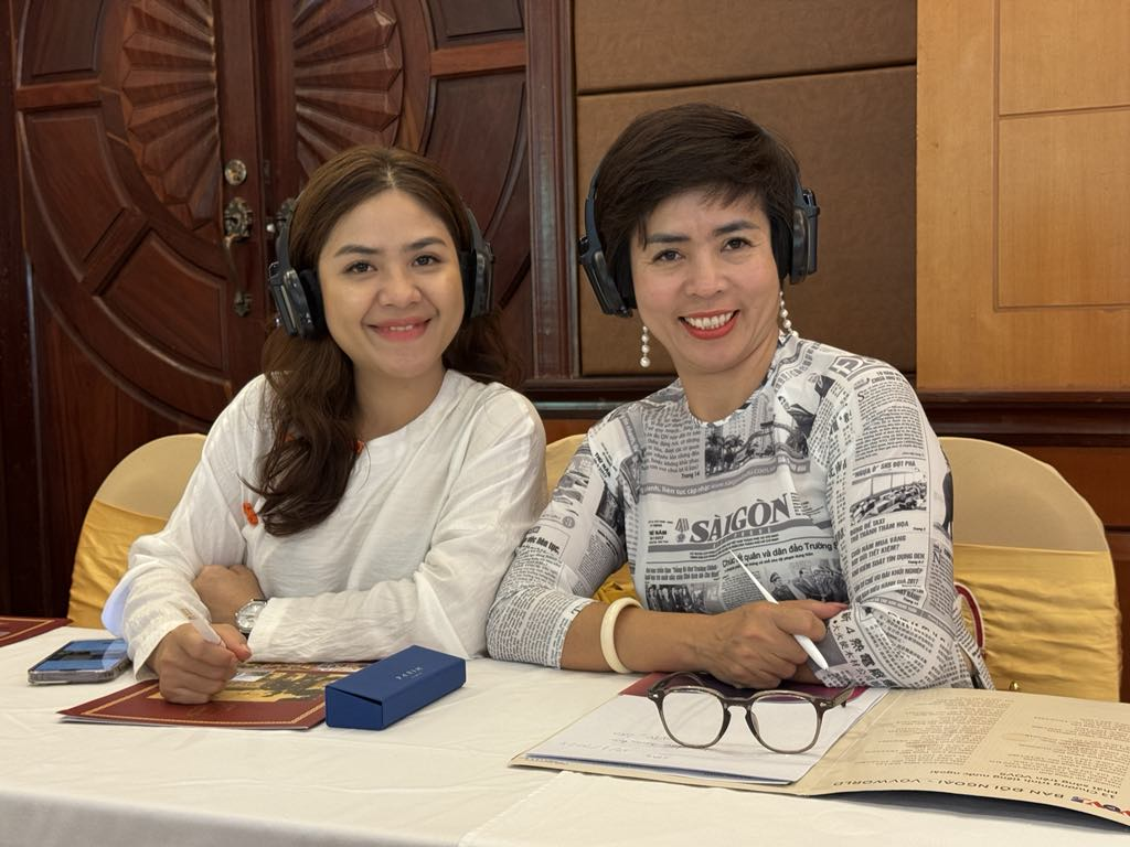 Nu Nu (bìa trái), một thính giả người Lào rất yêu thích chương trình tiếng Lào của VOV5, chụp ảnh cùng chị Chu Mỹ Bình, Trưởng phòng ASEAN 1 - VOV5 |
