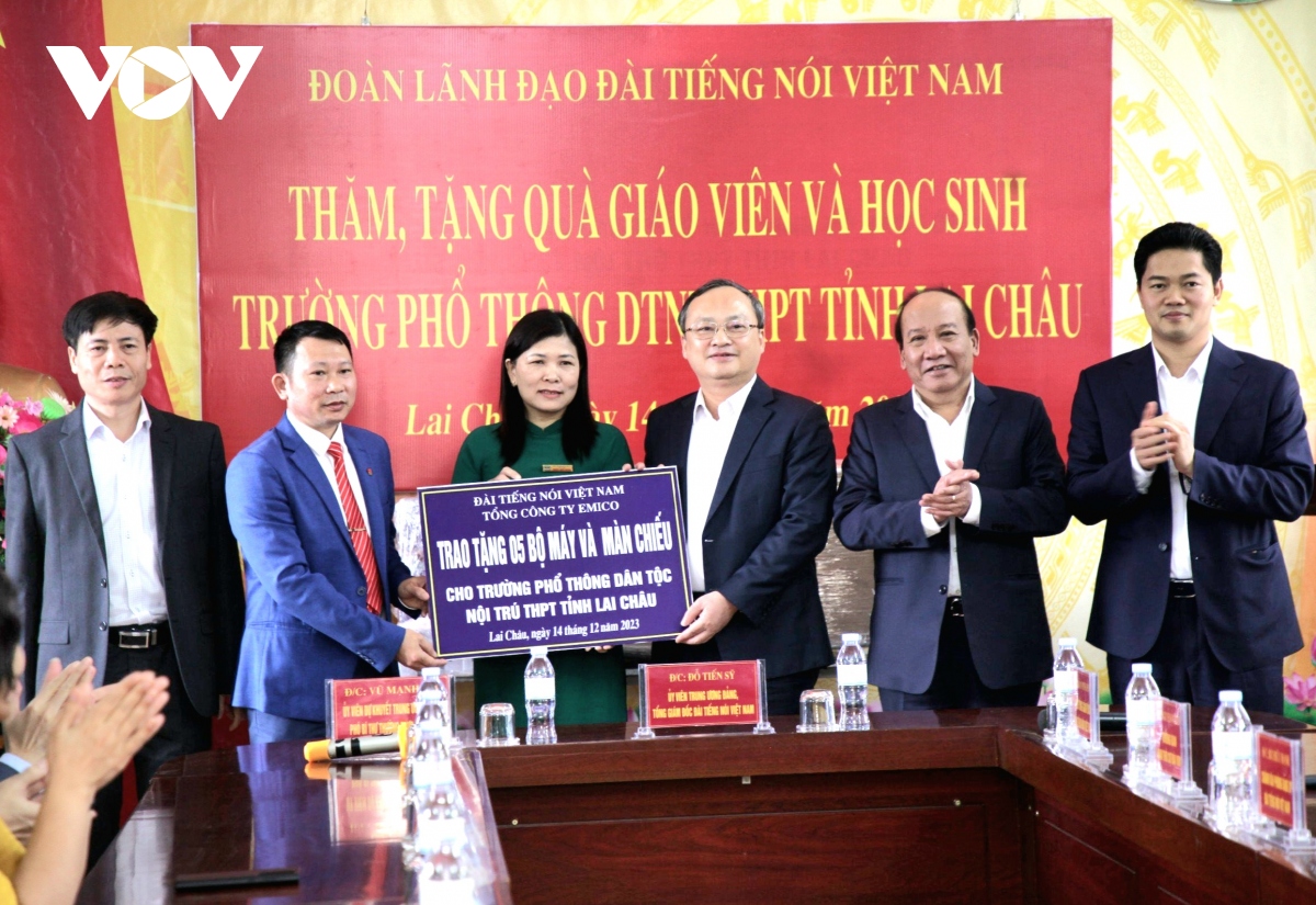 Sáng nay (14/12), Đoàn công tác của Đài Tiếng nói Việt Nam (VOV) do Tổng Giám đốc Đỗ Tiến Sỹ dẫn đầu, thăm, tặng quà Trường Phổ thông Dân tộc nội trú THPT tỉnh Lai Châu. 50 suất quà gồm tiền mặt, áo ấm mùa đông cùng 5 bộ máy chiếu đã được trao cho các em học sinh và các lớp học của trường.