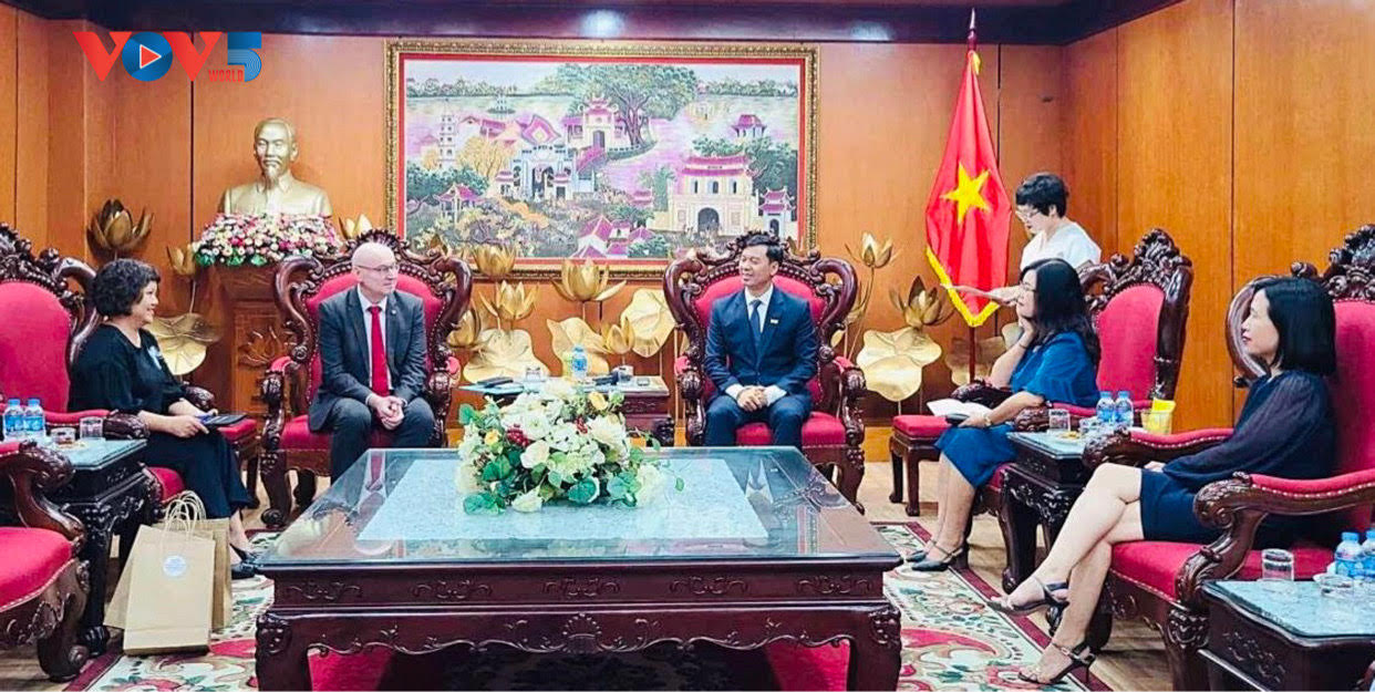 (VOV5) - Chiều nay (06/11), tại trụ sở Đài Tiếng nói Việt Nam (TNVN - VOV), 58 Quán Sứ, Hà Nội, Phó Tổng Giám đốc Đài TNVN Ngô Minh Hiển tiếp ông Pierre Du Ville, Trưởng đại diện Phái đoàn Cộng đồng người Bỉ nói tiếng Pháp (Wallonie-Bruxelles) và Vùng Wallonie tại Việt Nam.