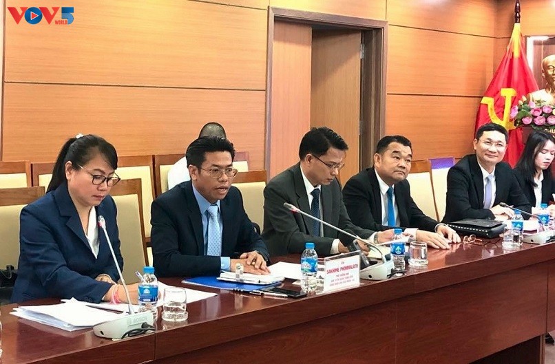 Ông Sakhone Phommalath (thứ hai, từ trái), Phó trưởng Ban Tuyên huấn Trung ương Đảng Nhân dân Cách mạng Lào, phát biểu. Ảnh: Lê Phương/VOV5