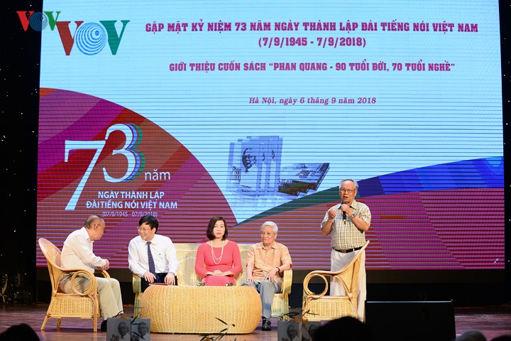 Sáng 6/9, tại Trung tâm Phát thanh Quốc gia, 58 Quán Sứ, Hà Nội, Đài Tiếng nói Việt Nam (TNVN) tổ chức gặp mặt kỷ niệm 73 năm thành lập Đài TNVN (7/9/1945-7/9/2018) và giới thiệu cuốn sách “Phan Quang – 90 tuổi đời, 70 tuổi nghề”.