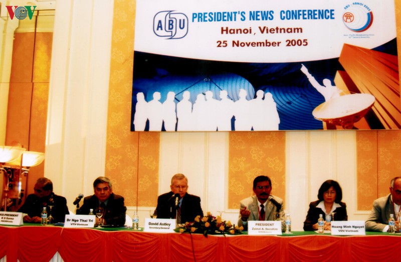 | Nguyên Trưởng ban HTQT Hoàng Minh Nguyệt tham gia chủ trì cuộc Họp báo của Đại Hội đồng ABU tổ chức tại Việt Nam năm 2005. |