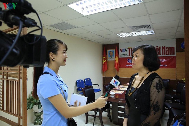 | Nhà báo Hoàng Minh Nguyệt trả lời phỏng vấn của PV Đài TNVN. |