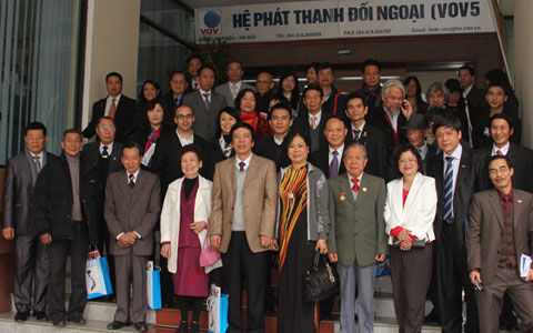 | Lãnh đạo Đài TNVN chụp ảnh với đoàn đại biểu kiều bào tới thăm, làm việc tại Hệ VOV5 |