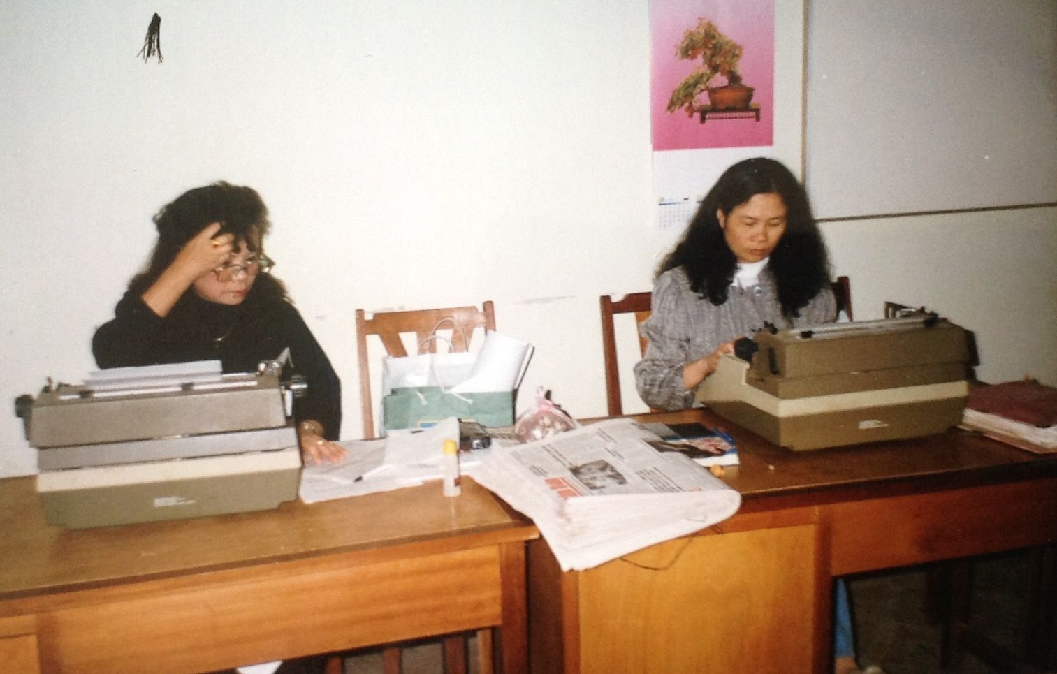 Những phóng viên phòng Việt kiều thời đó sản xuất tin bài bằng chiếc máy đánh chữ. |