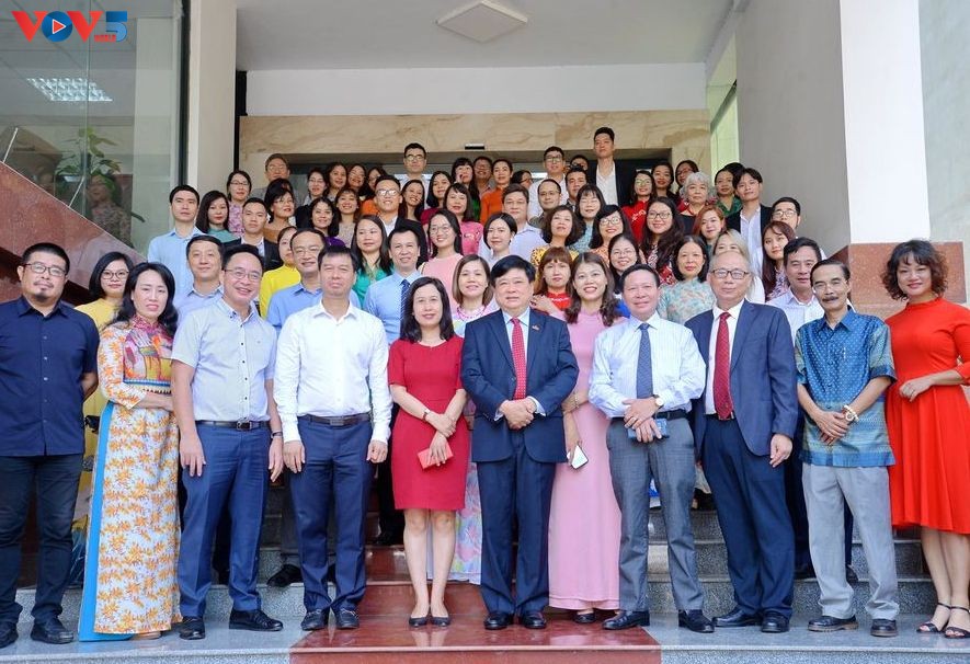 Ban Giám đốc Đài TNVN chụp ảnh cùng tập thể cán bộ, phóng viên VOV5
